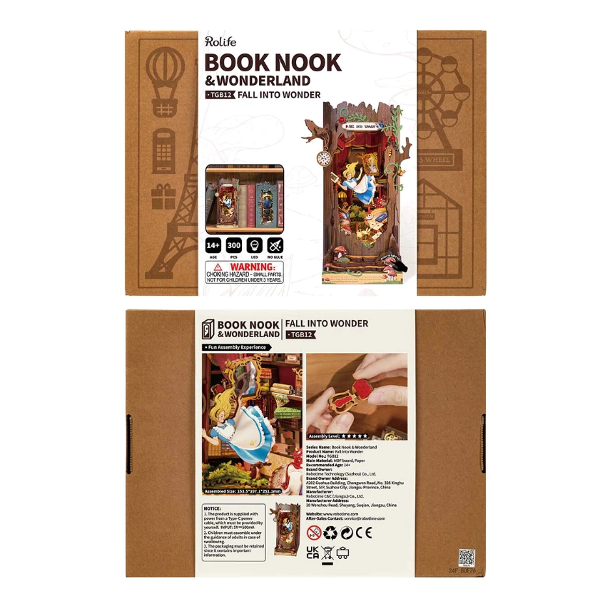 Let your fantasies lead you into a creative space of relaxation and focus with Rolife’s amazing book nook, Fall Into Wonder. The facade of the assembly takes the form of a grand tree trunk, its base formed into stump-like steps. At the very top, a keyhole-shaped opening hints at the mysteries within. Inside, decorative plates, picture frames, and hidden surprises like the infinity mirror are waiting to be discovered in what seems to be an indoor pond! There are quirky mushrooms, old volumes, board games, and the profound quote, “Imagination is the weapon in the war against reality”. Be silly and be curious with this one-of-a-kind book nook!