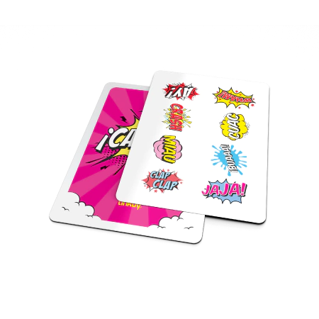 Tomando dos cartas al azar siempre habrá una onomatopeya o interjección que se repita. Ups!